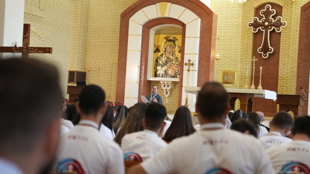 بدأ النهار بالقداس الإلهي الذي ترأسه سيادة المطران مار بشار متي وردة، راعي إيبارشية أربيل الكلدانية، الذي ألقى عظة مؤثرة تمحورت حول نداء الله الخفي في حياة الإنسان، مُستلهمًا من دعوة صموئيل وإرميا والرسل الأوائل، ليؤكد للشباب أن “مصباح الله لم يُطفأ بعد”، وأن الربّ لا يزال يهمس في قلوبهم، داعيًا إياهم لينهضوا ويُلبّوا الدعوة دون خوف أو تردّد.