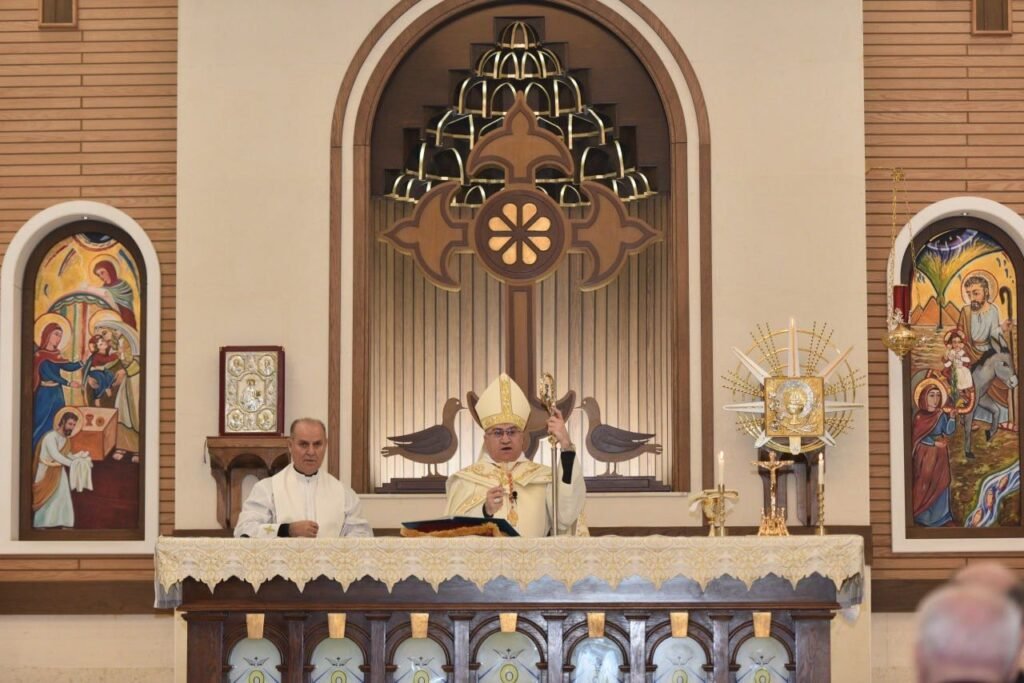 The Divine Liturgy was presided over by His Excellency Mar Bashar Warda, Archbishop of Erbil, and concelebrated by Fr. Shwan Hanna, the spiritual advisor of the association, in the presence of Fr. Louis Qaqoos and Fr. Zia Shaba, along with the families of the honored couples, members of the association, and a gathering of the faithful.