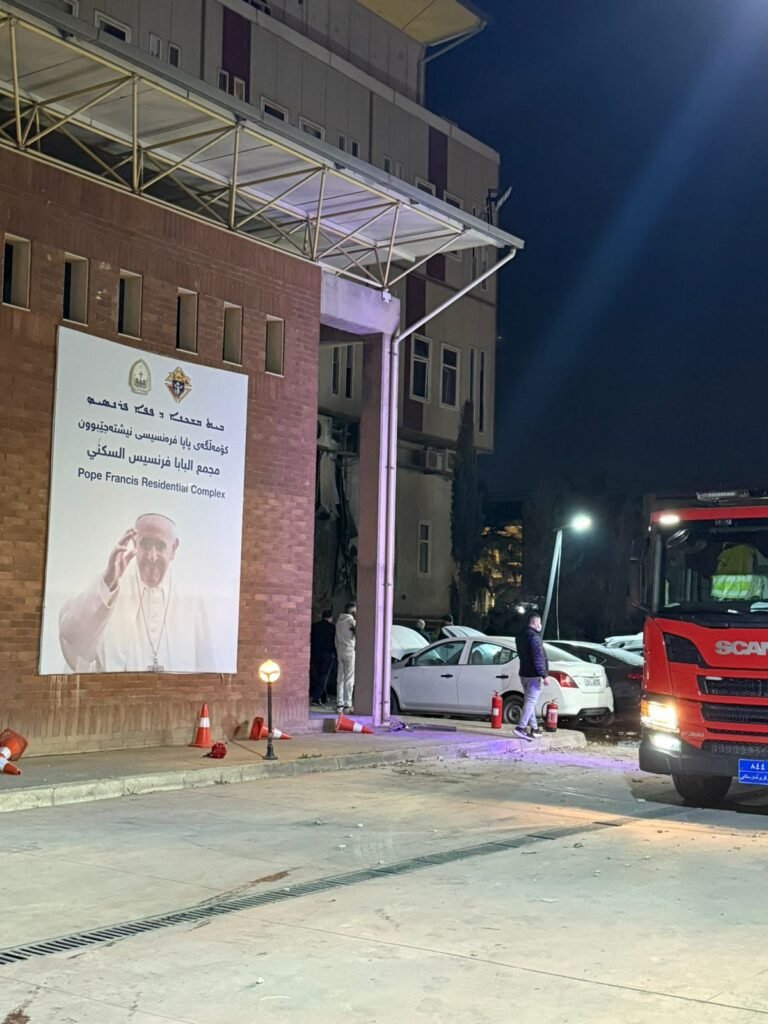 The chapel of McGivney house , affiliated with the Chaldean Catholic Archdiocese of Erbil, sustained damage as a result of a rocket and drone attack. The complex is located in the town of ankawa and is home to several Christian families.