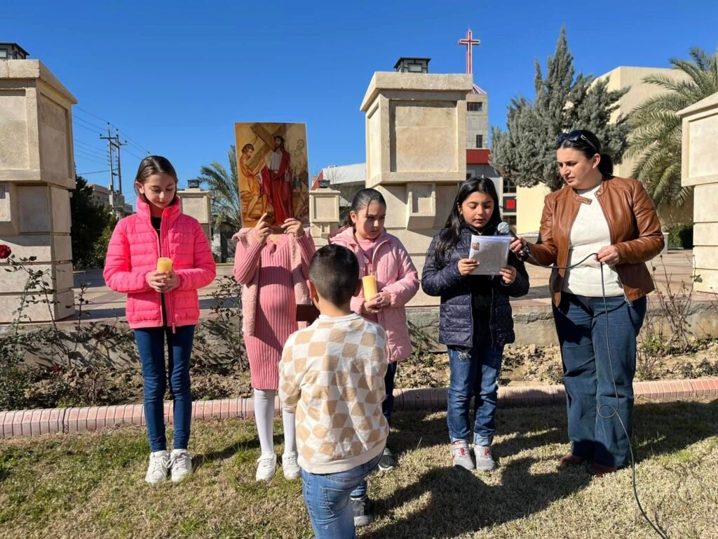 On March 1, 2024, 50 fourth-stage catechism students participated in the Stations of the Cross at Saint Joseph Monastery, home of the Chaldean Sisters, Daughters of Mary Immaculate, in Erbil, Iraq. The event was part of the catechism program’s ongoing efforts to deepen students’ spiritual lives through meaningful experiences.