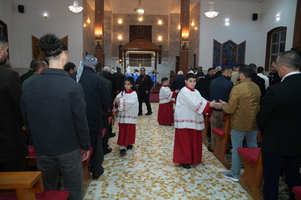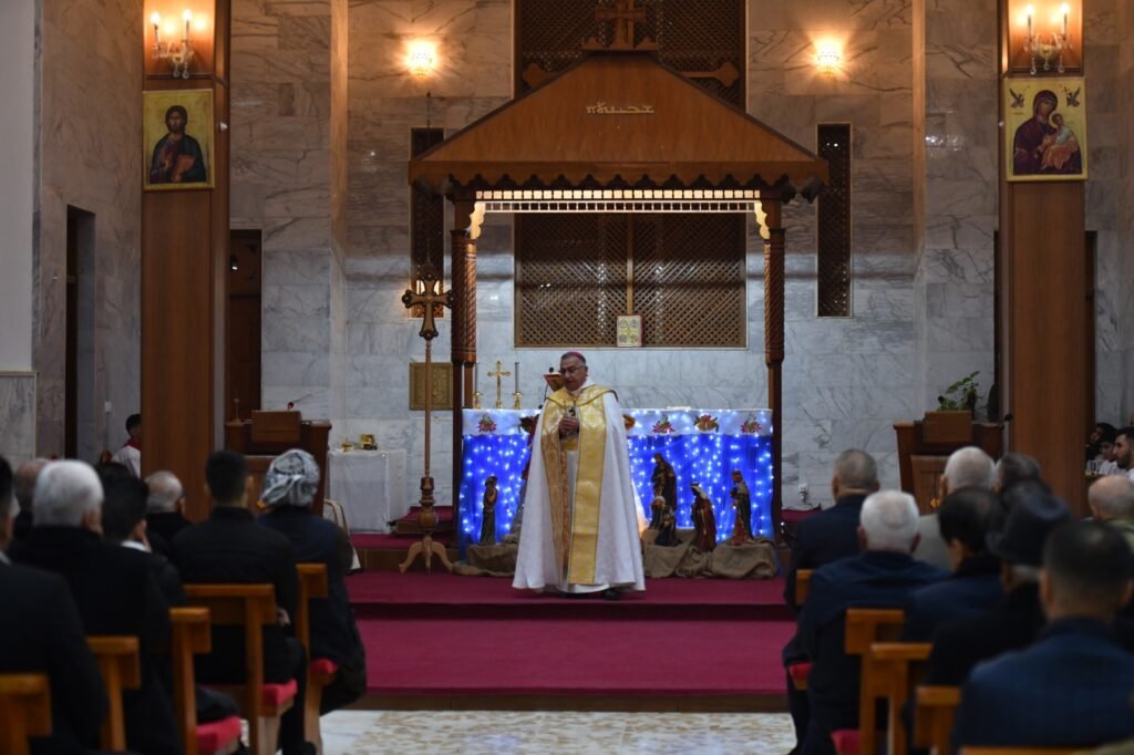 The Archbishop of the Archdiocese, Mar Bashar Matti Warda, celebrated the Mass of the Nativity of Our Lord Jesus Christ at the Church of the Martyrs, accompanied by Fr. Anis Yacoub, parish priest, with the participation of a large gathering of the faithful.
